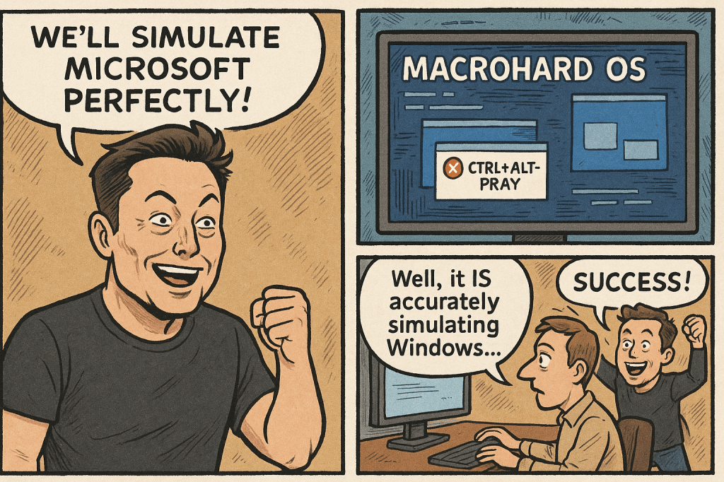 Outlook, Excel, that smug ghost of Clippy from the days gone by – yupski, they’re all getting AI body doubles, and the name he gave to it is Macrohard. The humor of a 14-year-old gamer stapled to the ambition of a man who builds space traveling flamethrowers just for fun.
