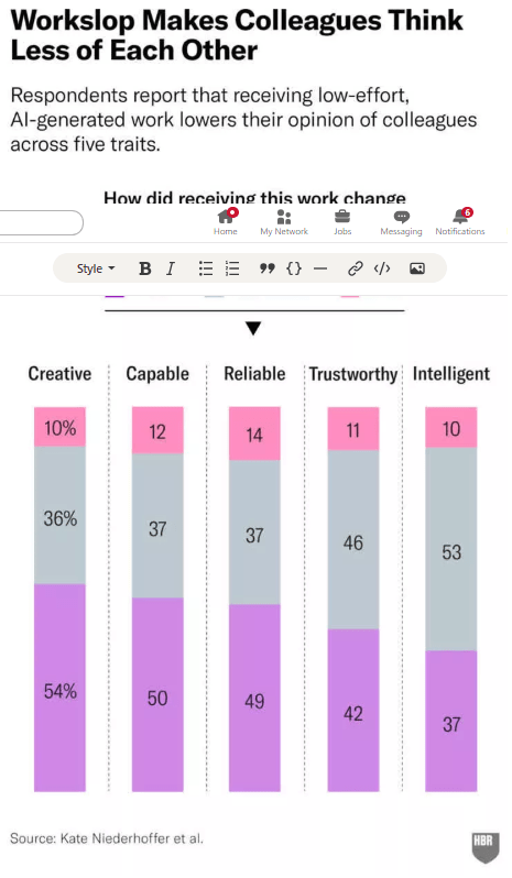 And it’s not only the rework you know, this one is about respect evaporating. If you send me a pile of AI compost, I stop thinking of you as a colleague and start filing you next to the office printer – there, but dumb.