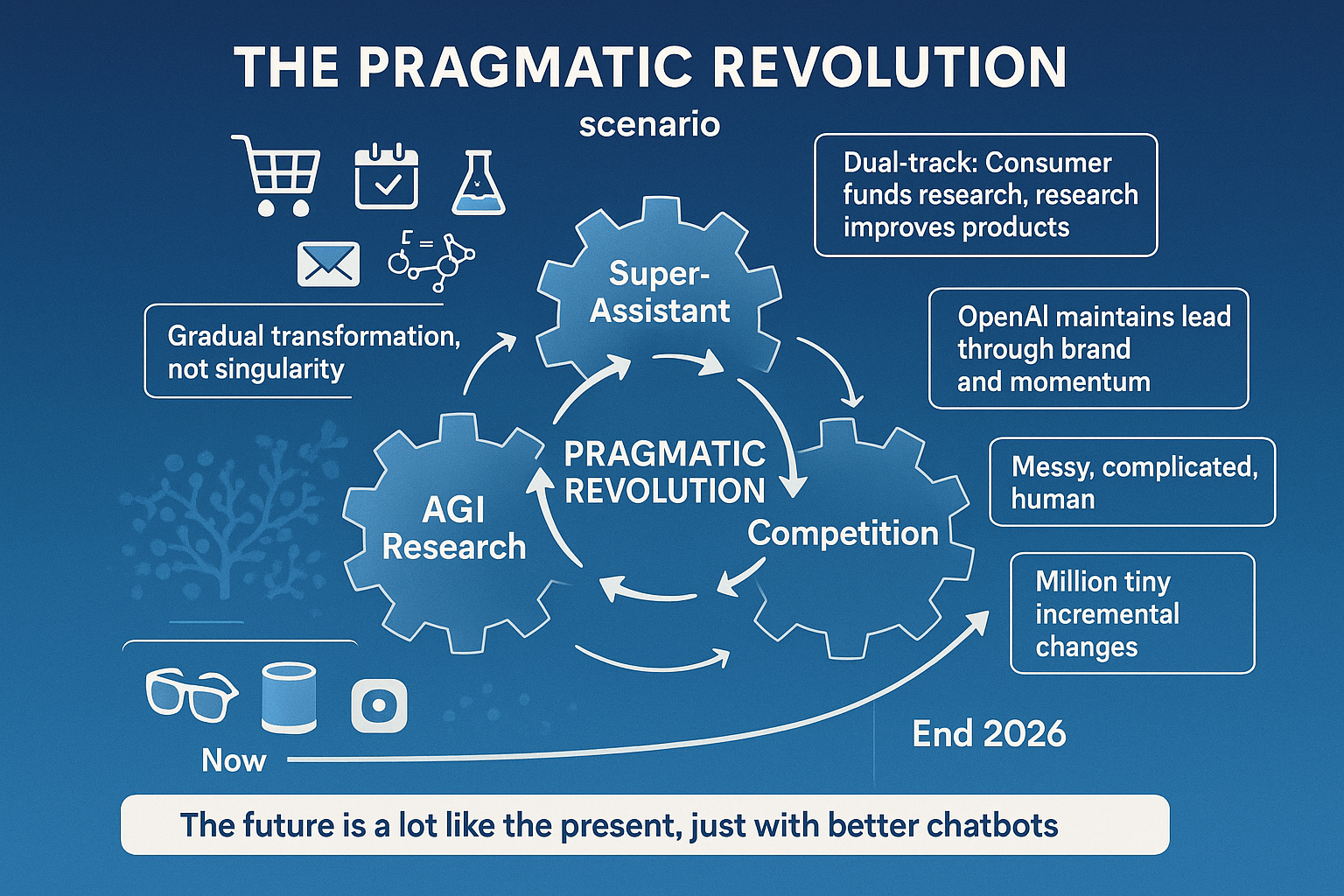 They’re all feeding into each other. The super-assistant needs the research breakthroughs to get smarter. The AGI researcher needs the consumer product to generate revenue and gather data. And the competitive pressure forces both tracks to move faster, to take risks, to push boundaries that maybe shouldn’t be pushed quite so hard quite so fast.