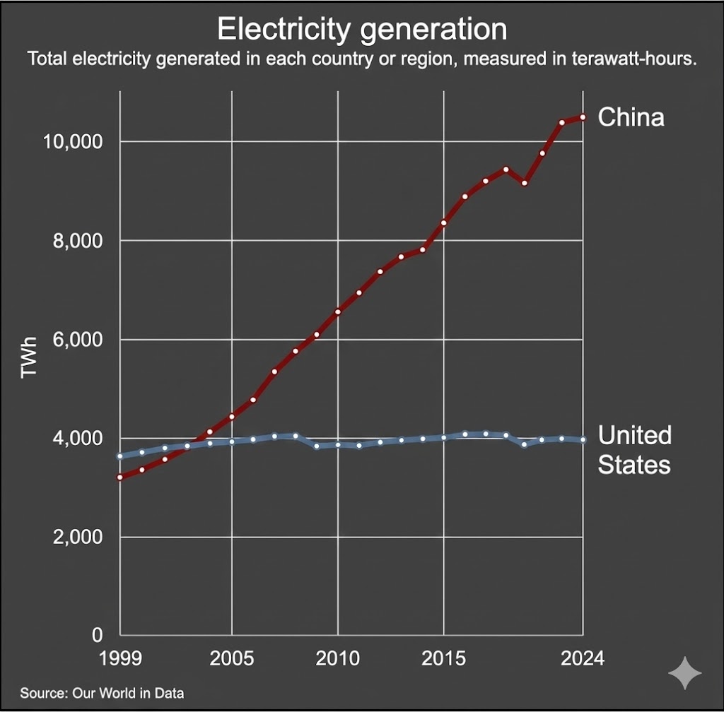 Now, what China is doing is actually very basic, almost embarrassingly so. They looked at the modern world and though everything runs on electricity. Cars, factories, phones, AI models, hospitals, trains, mines, all of it.