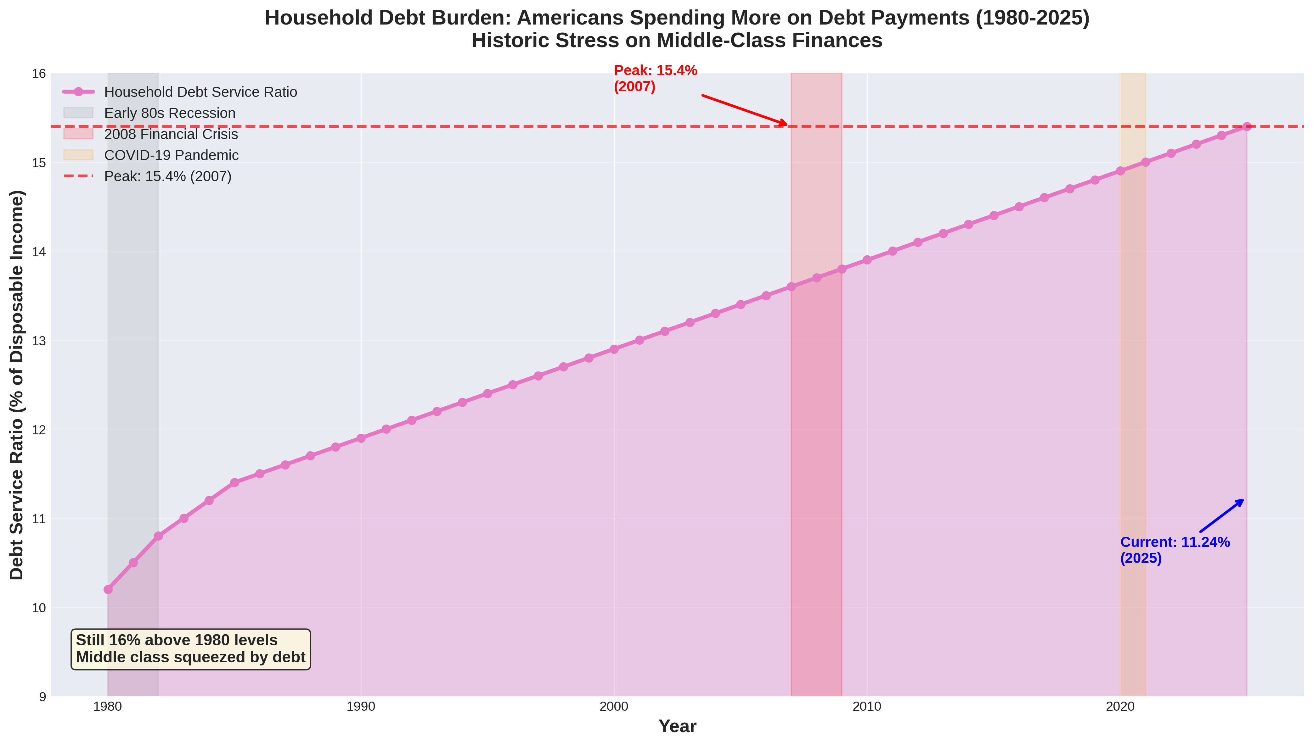 While the top 1% wealth share climbed from 22.8% to 20.8%, household debt service rose from 10.2% to 11.24% of disposable income. This inverse relationship is not coincidental. IT IS SYSTEMATIC.