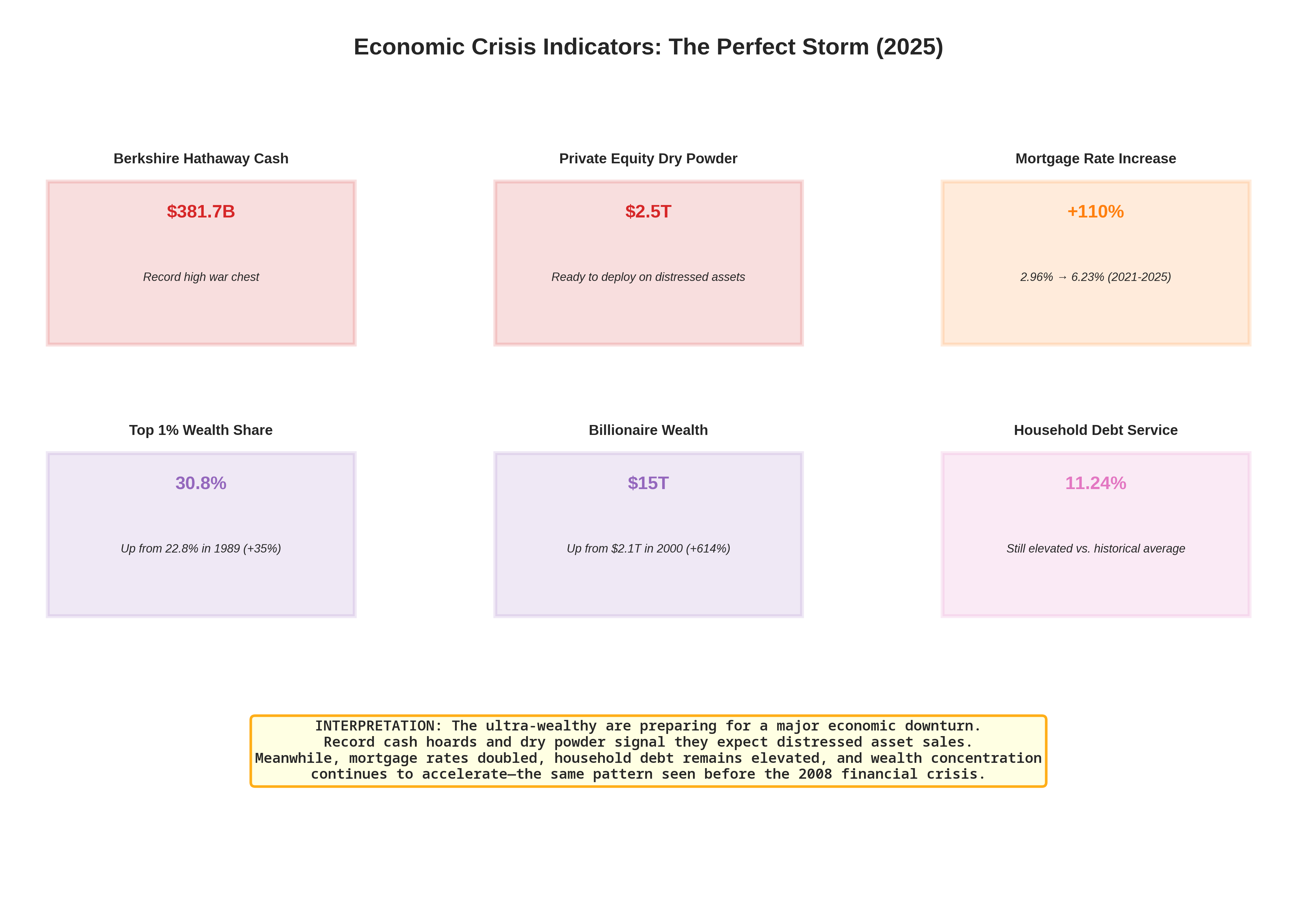 ‡ Figure above: Six critical indicators that corroborate the claim that the ultra-wealthy are preparing for a major economic downturn while the middle class remains vulnerable.