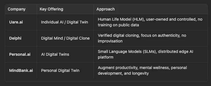 If you are paying attention, you’d have noticed me saying Uare isn’t alone in this race to replicate our thoughts. Yup, the personal AI space is getting crowded, and honestly, the competition is fierce enough that we might want to call it what it really is, a bunch of really smart people competing to see who can make the best version of you that isn’t actually you.