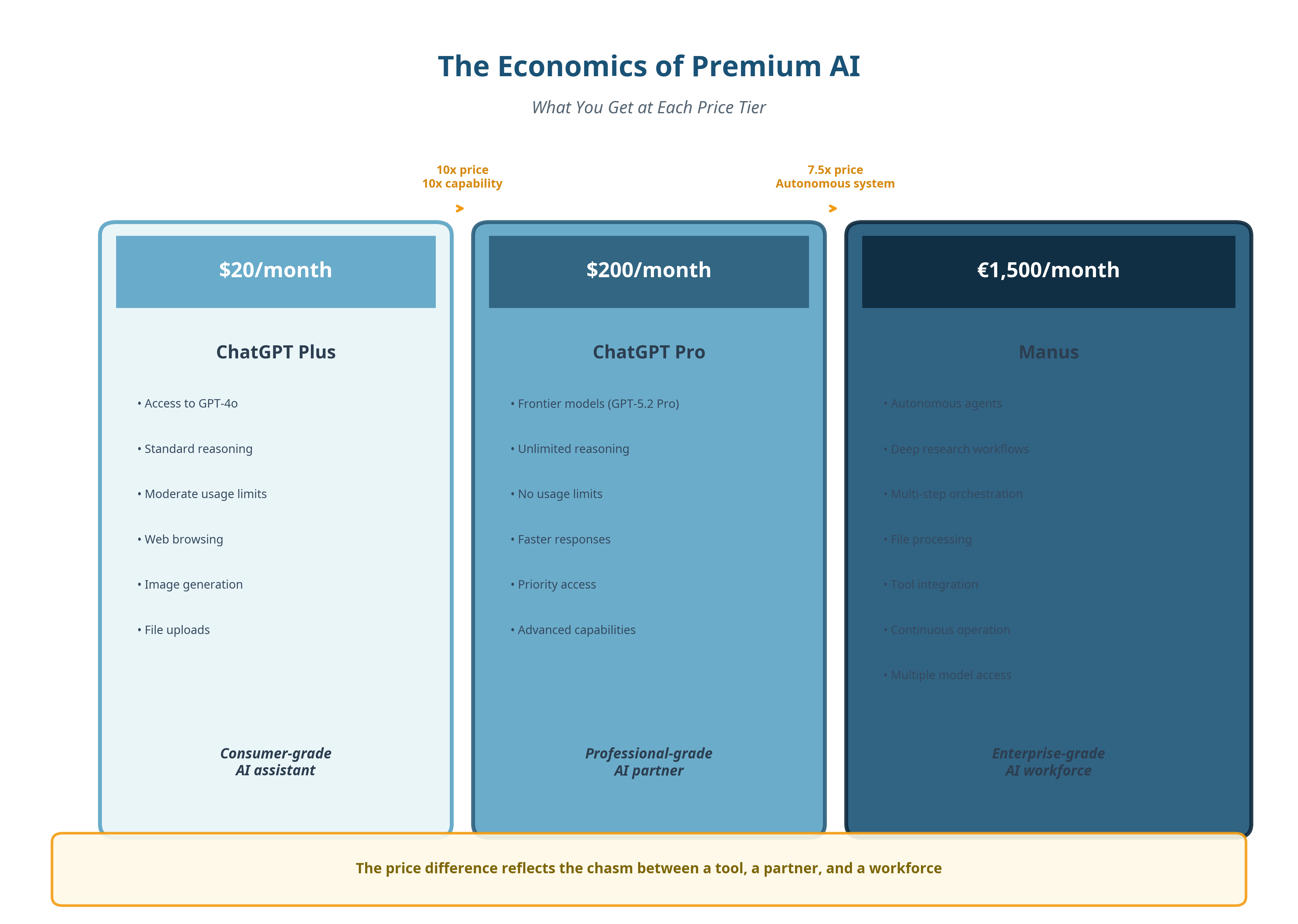 That discrepancy only makes sense once you stop thinking in terms of “AI tools” and use AI in terms of output per unit of time. At the higher end, you’re not paying for answers but for sustained reasoning, orchestration, verification, and autonomy.