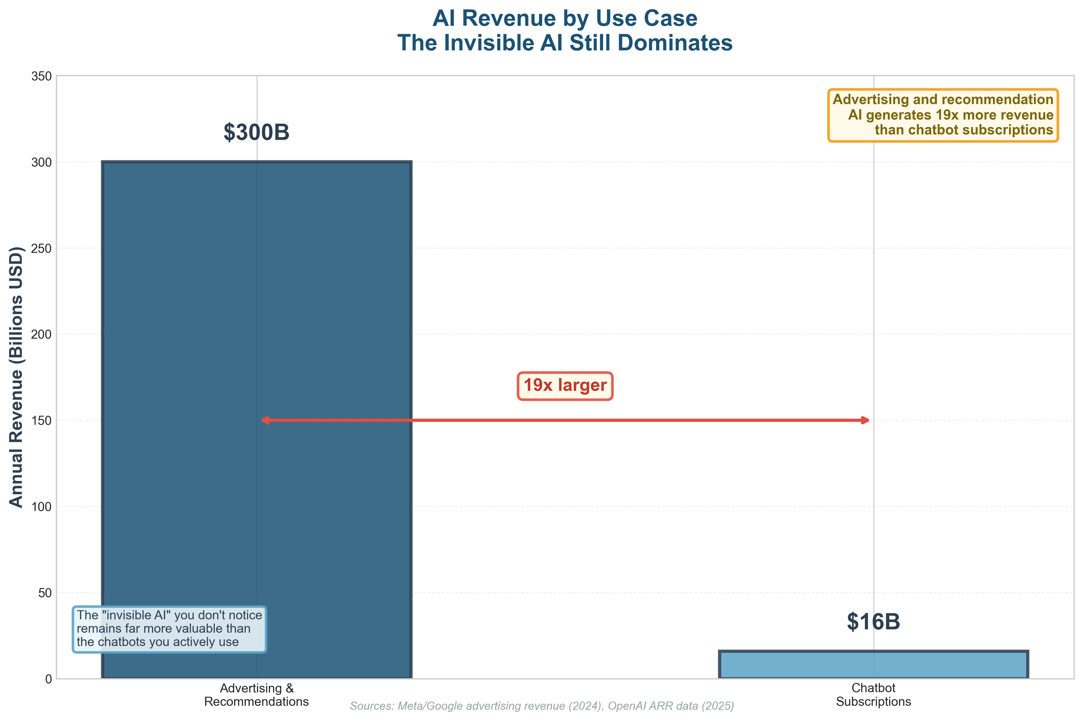 This is still the most valuable application of AI today (from a business perspective). Advertising and content targeting generate hundreds of billions of dollars annually. Chatbots, by comparison, are still small.