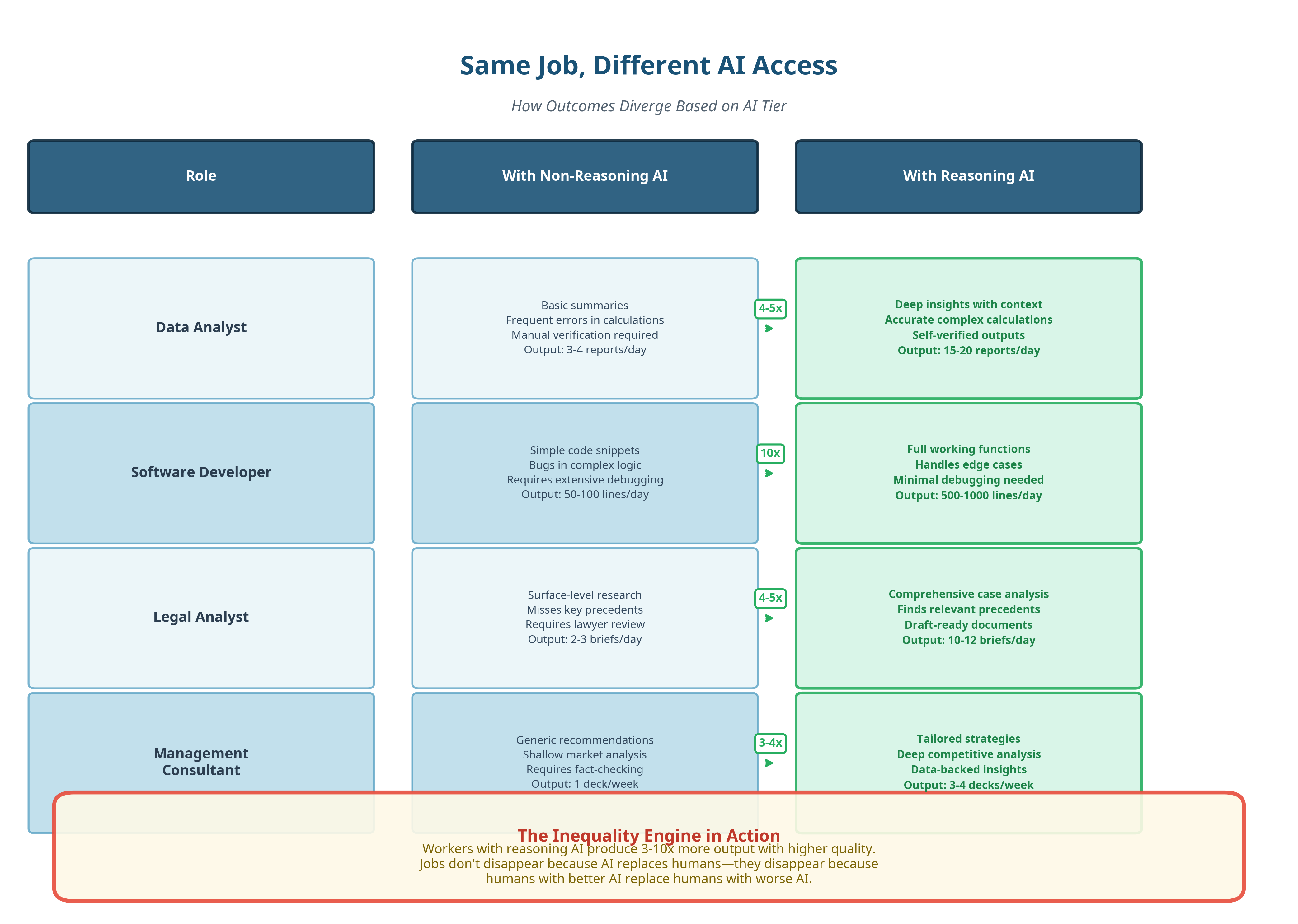 This is where the word “inequality” earns its place, and I’m not using it as a moral statement, but as a structural outcome because when the cost of better reasoning scales faster than wages or general access, capability concentrates. And once capability concentrates, outcomes follow.