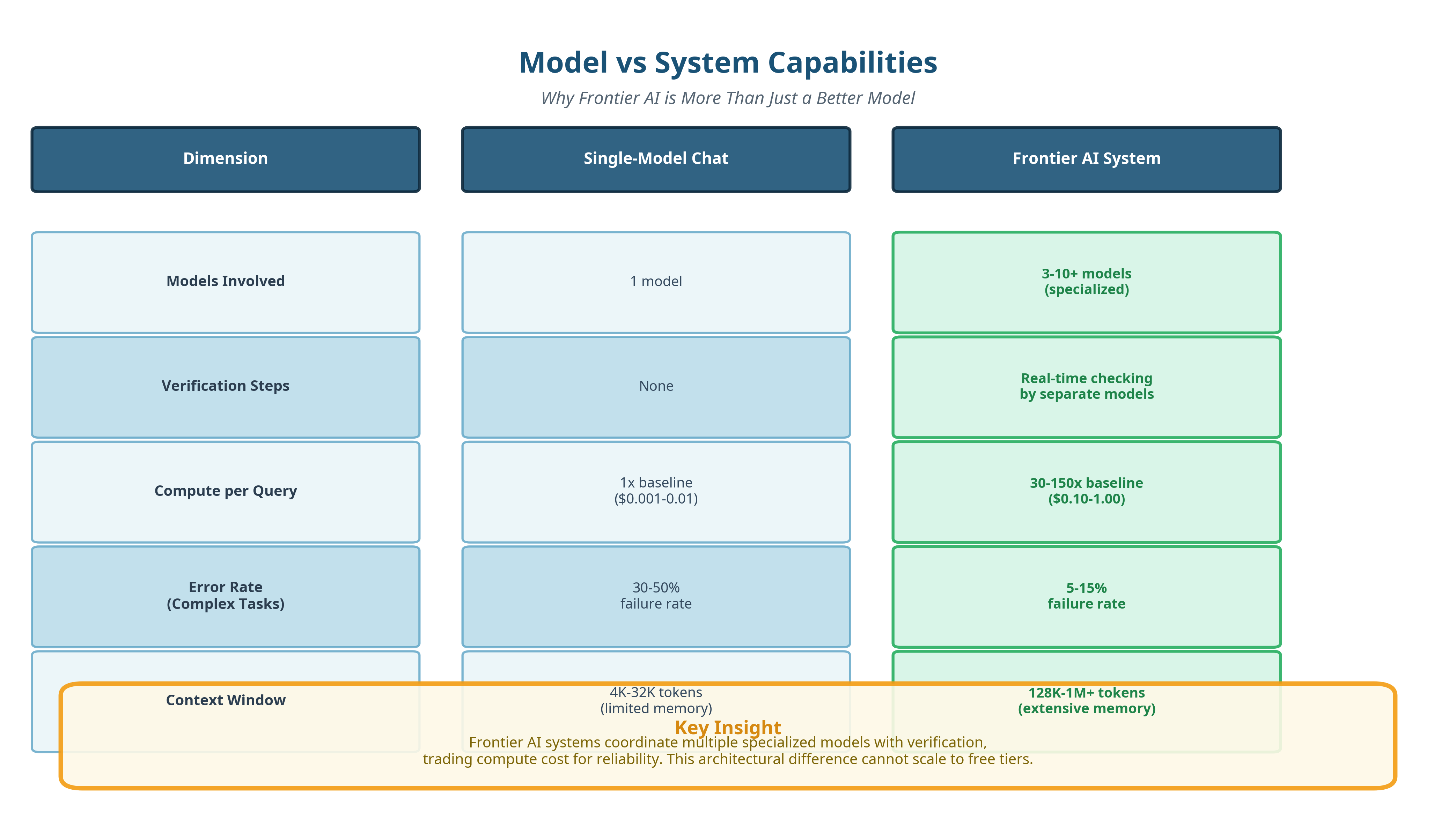 This distinction matters because most public discussion still talks about “models” as if they were single pieces of software answering prompts in isolation. That mental model is already outdated for anything at the frontier. What most people interact with today is a single model responding to a single prompt. Frontier AI systems work very differently.