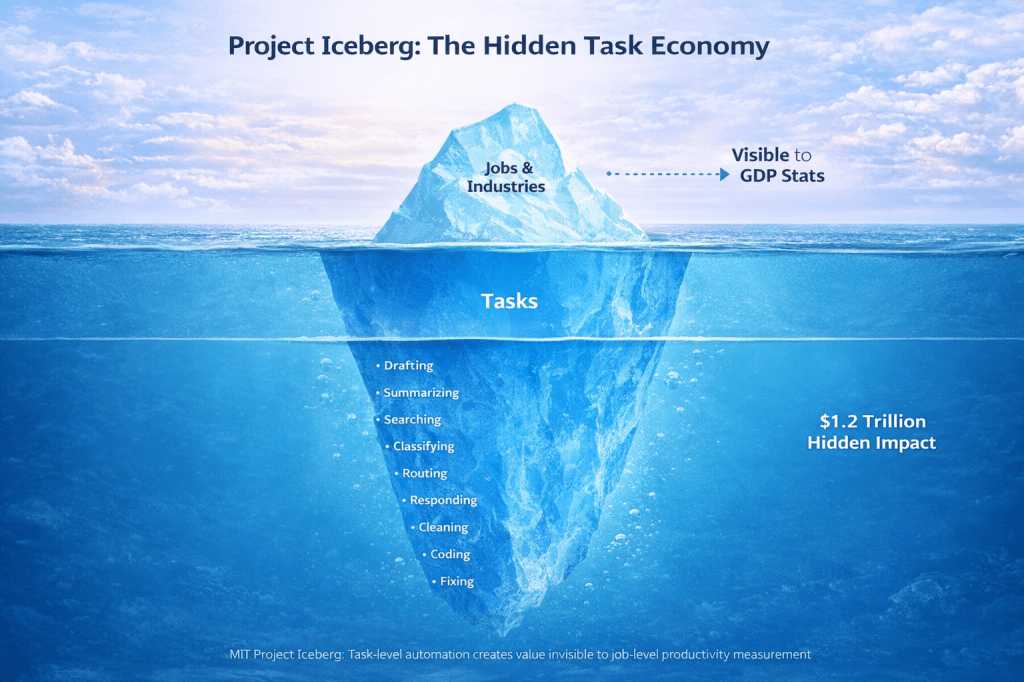 AI mostly automates tasks within jobs – not entire jobs – that’s the whole “Project Iceberg” point I described in this piece. The visible layer is jobs, industries, and employment categories. The massive hidden layer is what people do inside those jobs, minute by minute, task by task. That’s where AI lives.