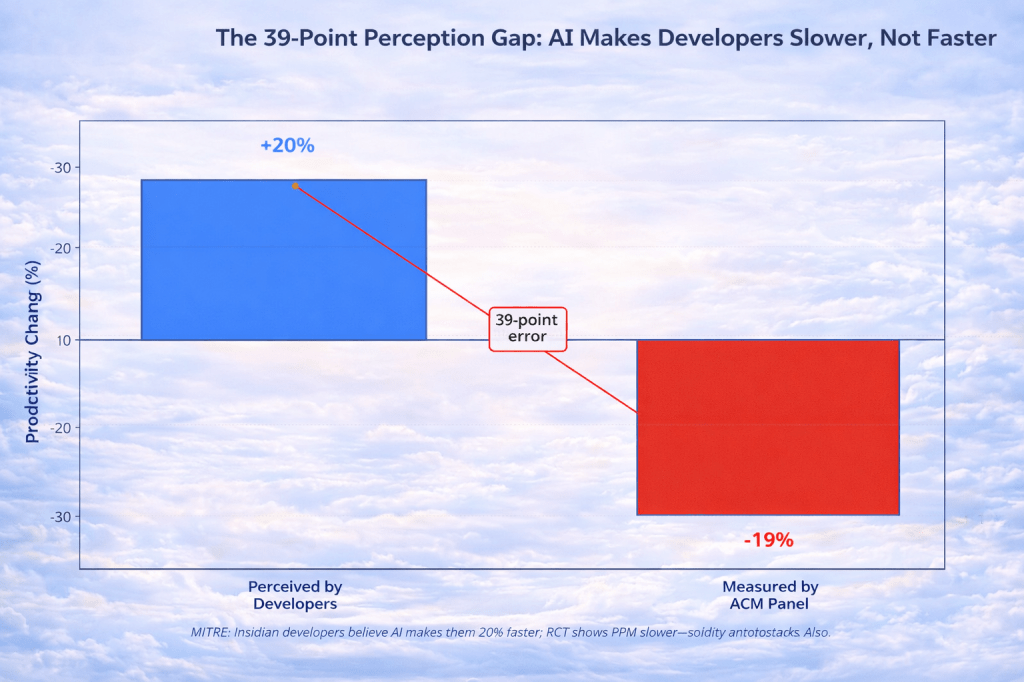 Now the most entertaining part of the paradox. Sometimes AI simply fails to help. It actually makes people less productive. Ever thought about that? And the cherry on this particular sad little cake is that people can still swear it is helping them while it actively slows them down.